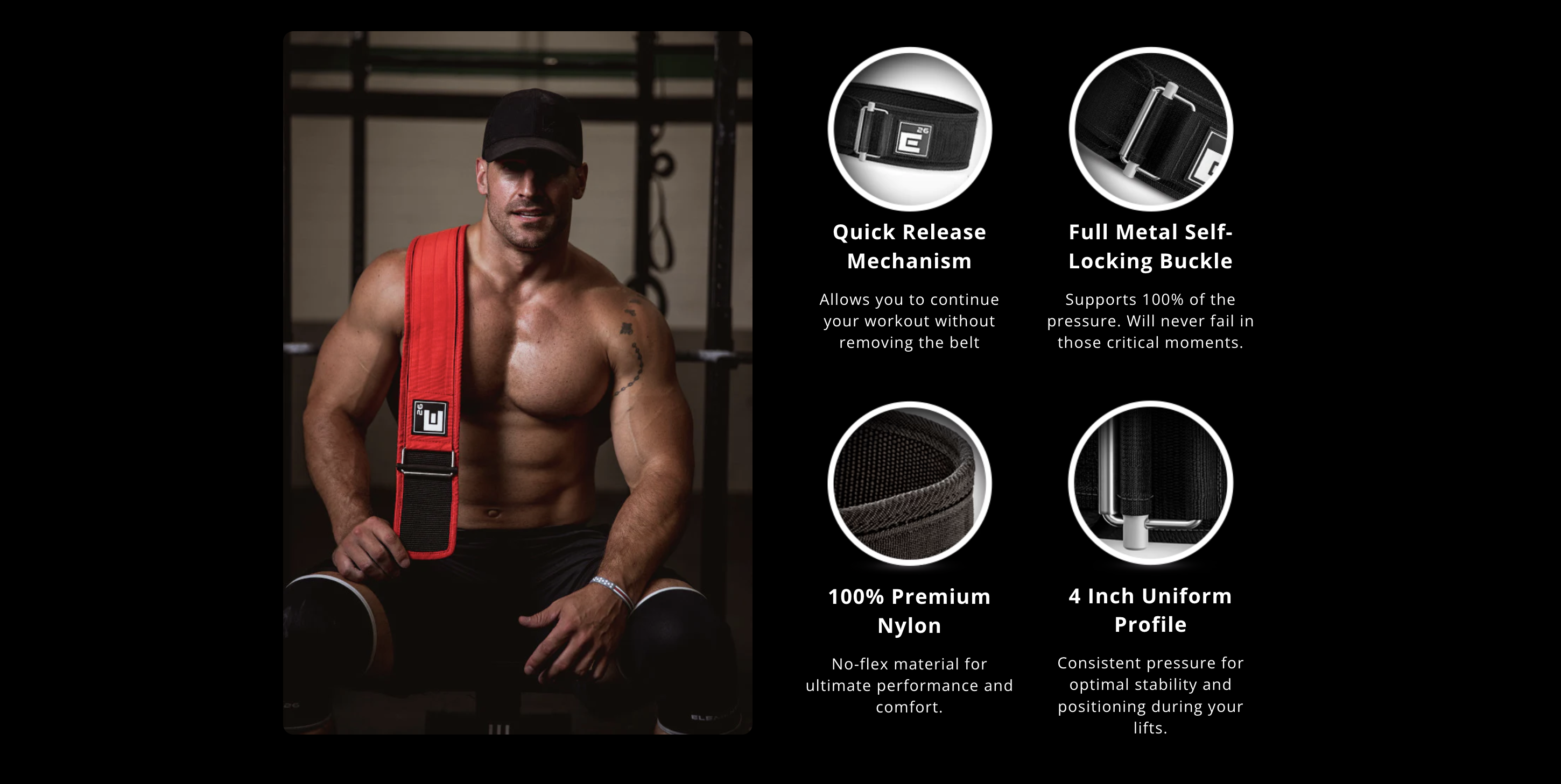 Unlike other belts that only rely on cheap velcro to support your lifts, our weight lifting belt uses Self-Locking technology that will never wear down and risk injury during your olympic lifts.