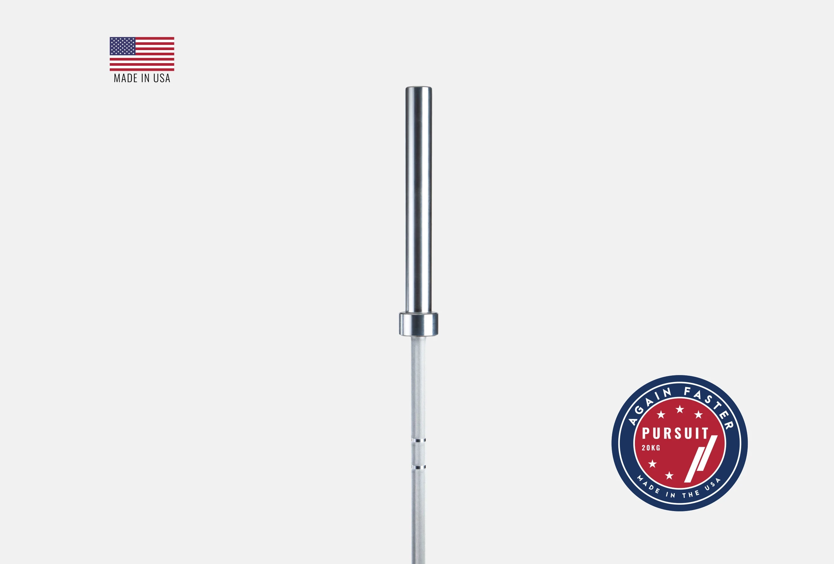 Made in the USA from high tensile strength alloy steel, the Again Faster Pursuit Barbell is perfect for athletes searching for a bar that works as well on the rack, platform or bench.
