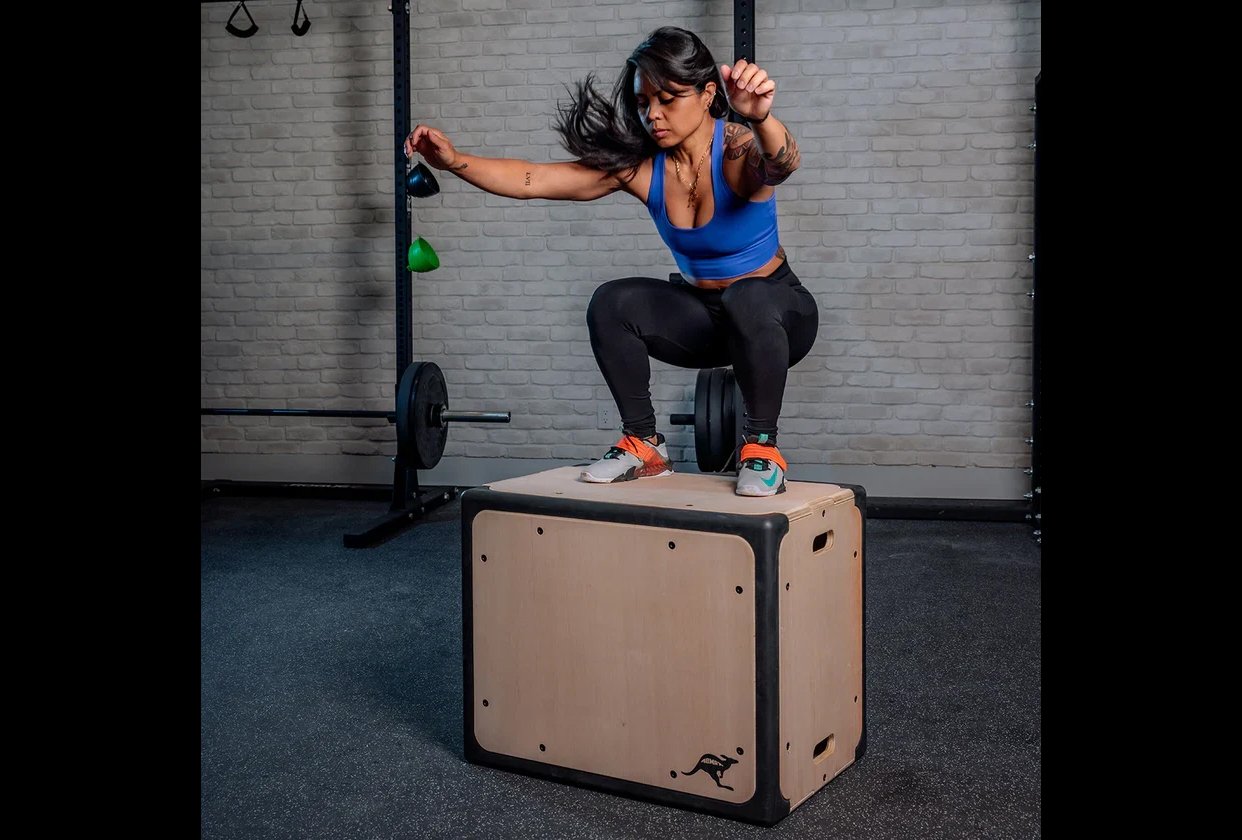 The RooBox utilizes the best qualities of both wooden and foam plyo boxes. The construction of the box consists of eight panels made entirely out of wood that ensure rigidity and stability.