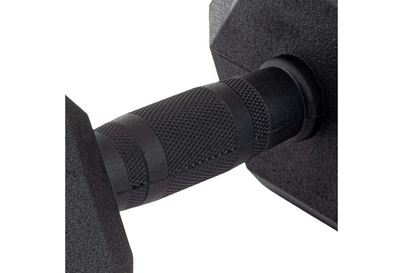 Enhanced knurled rubber grip design that is super grippy and is forgiving on your hands