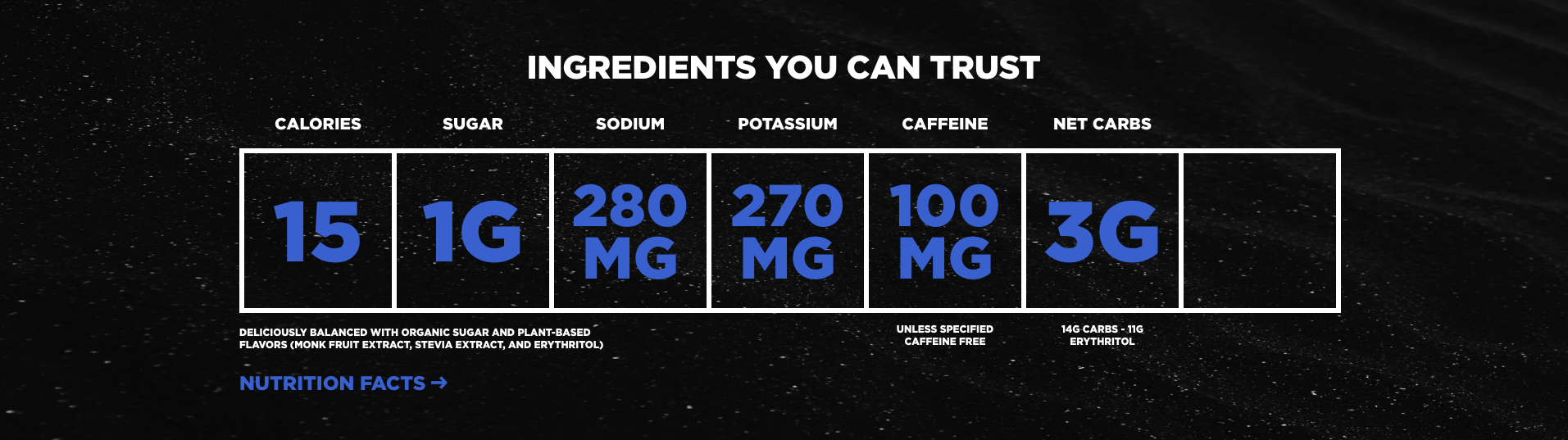 We use a plant- and fruit-based mix of erythritol, monk fruit, stevia, and organic sugar to give our O2 flavors their unique flavor profile. No junk or fillers - just 10 clean ingredients you can pronounce.